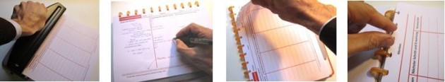 Das innovative Ringsystem mit der speziellen Lochung bietet Ihnen die Möglichkeit einzelne Seiten jederzeit herauszunehmen, ergänzen oder umzusortieren ohne diese dafür abreißen zu müssen. Somit wird es jederzeit möglich Ihre Arbeitsblätter an eine Tafel vor Ort am Prozess zu befestigen und, wenn diese ausgefüllt sind, zurück in das Buch zu sortieren.